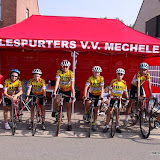 Broer Cédric gaf ook het volle pond bij de 12jarige Aspiranten net zoals Johan Sonck en Jordy De Laet dat deden. Alle drie eindigden ze in de kopgroep in een erg snelle koers. Verder volgden Nick Kerremans, Seppe Blommaerts, Yoshi Verspecht en Jonas Verhasselt. Met zijn arm in de plaaster kwam Olivier Van der Donck zijn vrienden aanmoedigen.